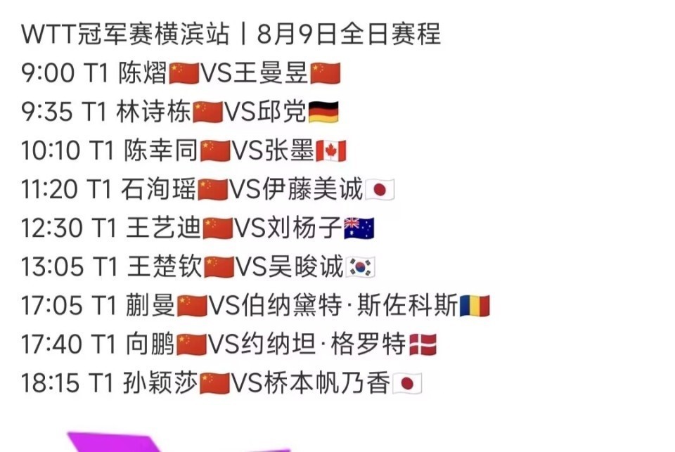 猖狂2025年8月9日WTT横滨冠军赛男单16强赛杀青,国乒男单5东说念主出战,仅剩王楚钦和向鹏2名选手晋级八强。