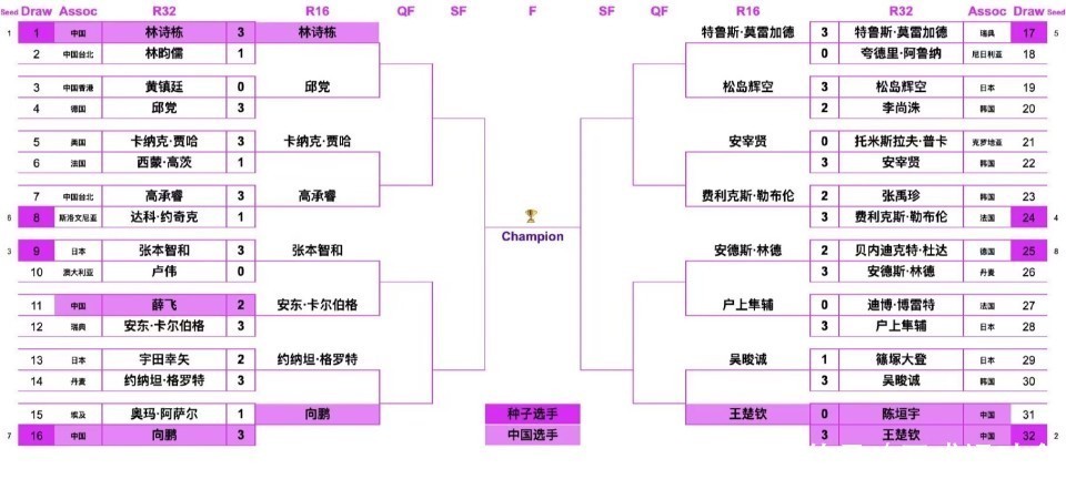 向鹏:1/4决赛迎战日本选手宇田幸矢,若胜出可能对阵张本智和。