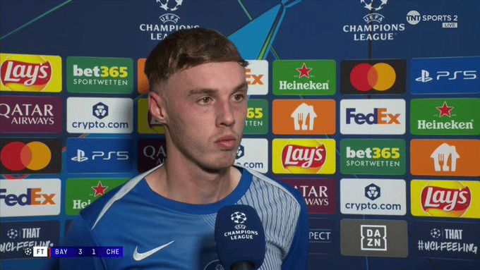 虎扑09月18日讯切尔西边锋科尔-帕尔默在1-3输给拜仁慕尼黑的欧冠赛后,摄取多家媒体采访。