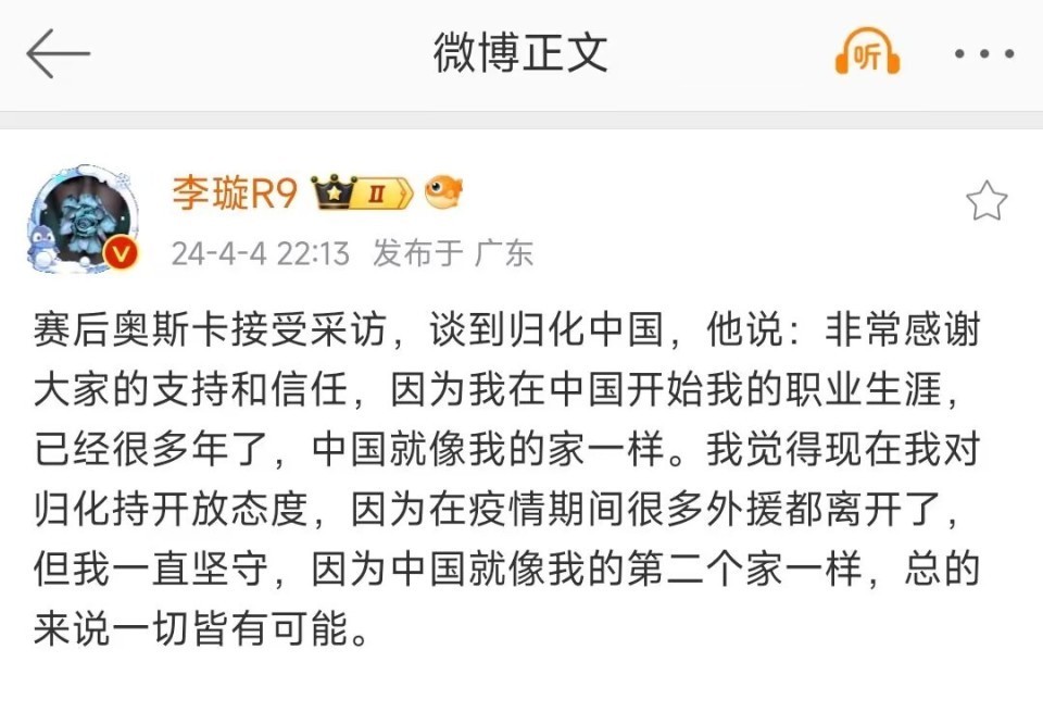 奥斯卡,基本愉快归化,也示意中国事第二闾阎,那么,归化的资金,谁出呢?